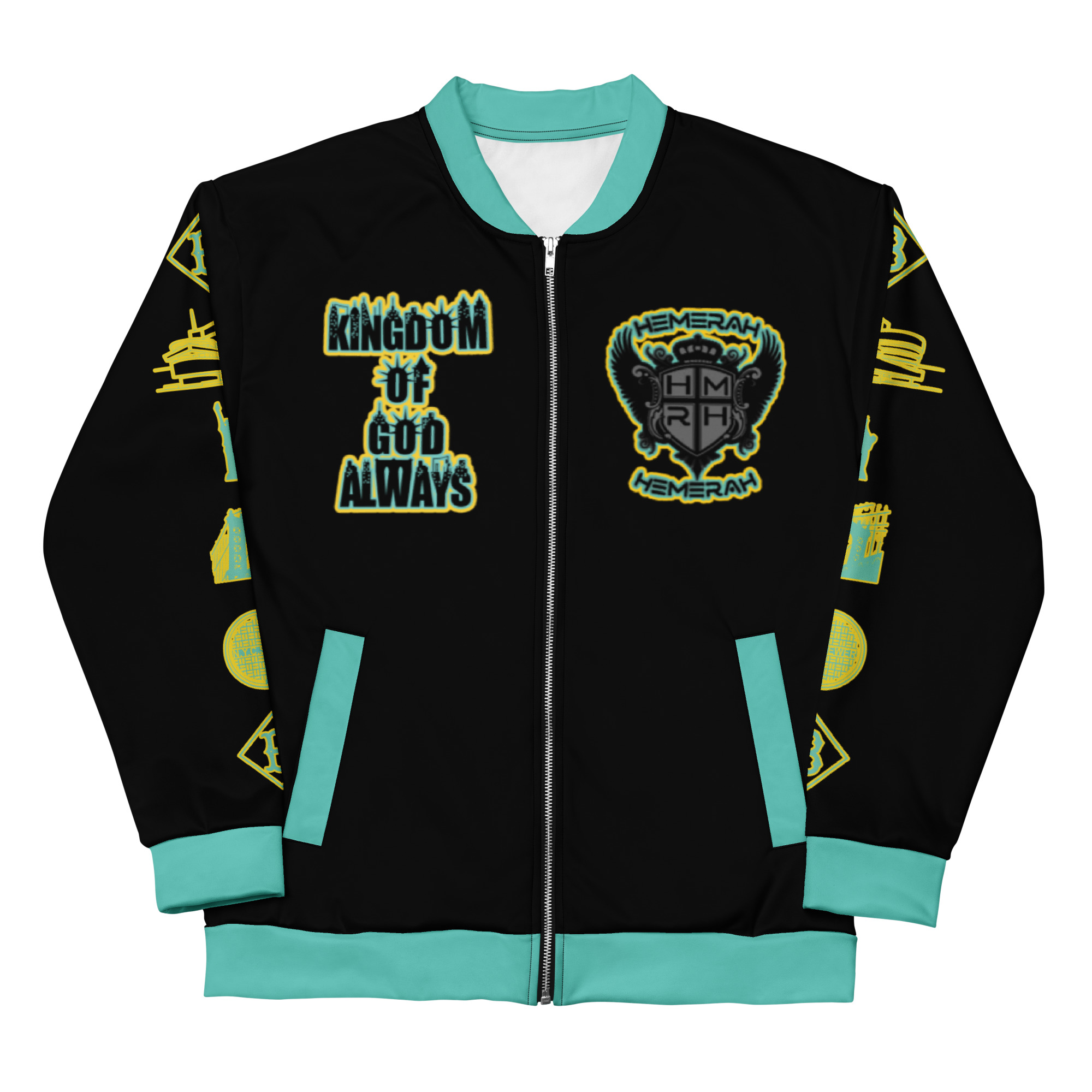 Add a little zing to your wardrobe with The Hemerah Kingdom Of God Always Bomber Jacket. This bomber jacket can be worn on a basic t-shirt, or layer it on top of a warm hoodie—it’ll look great either way. The Hemerah Kingdom Of God Always Bomber Jacket has a brushed fleece inside, and a relaxed fit, this Bomber Jacket is just the stuff of the dreams, so be quick to grab yourself one!