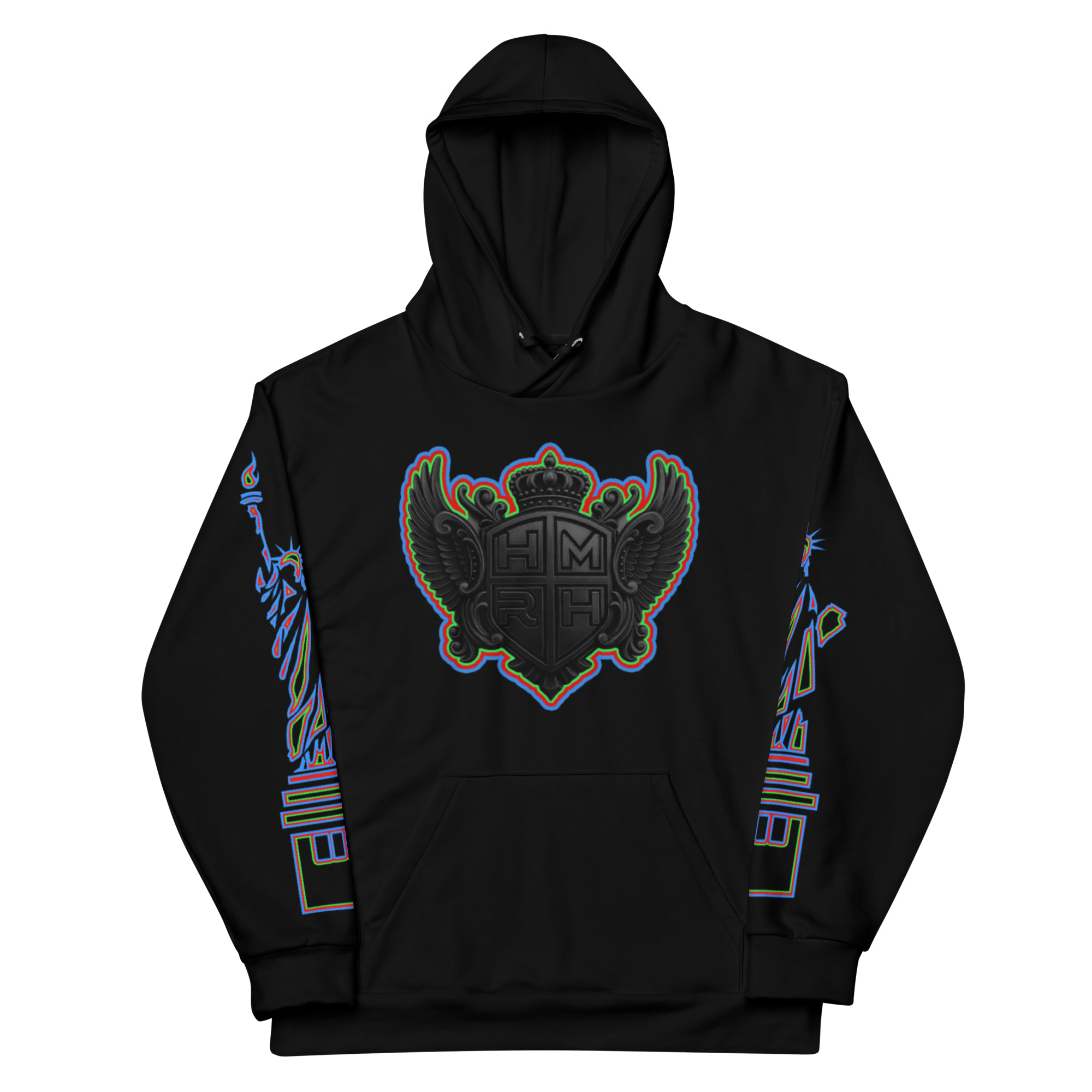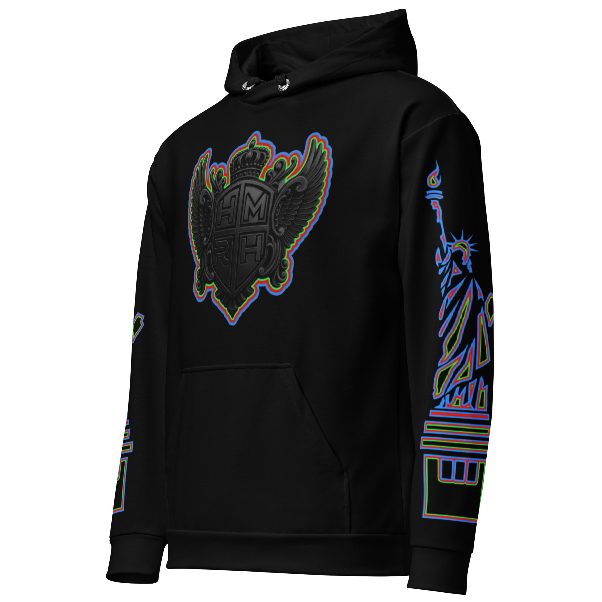 Hemerah Neon Outline NY Liberty Retro Glitch Streetwear Hoodie