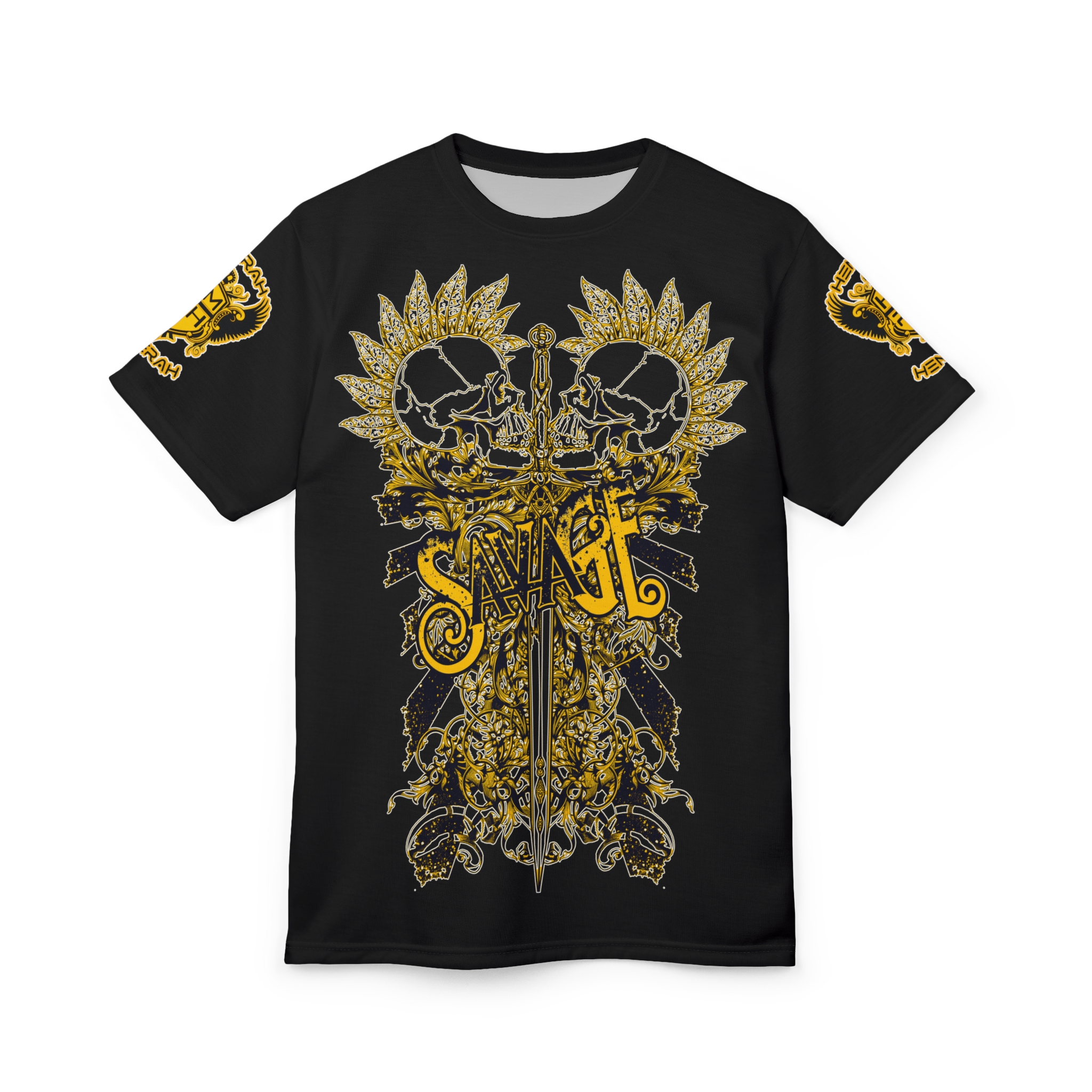 Hemerah Savage Is Greatness Skull Gothic Black & Gold T-Shirt