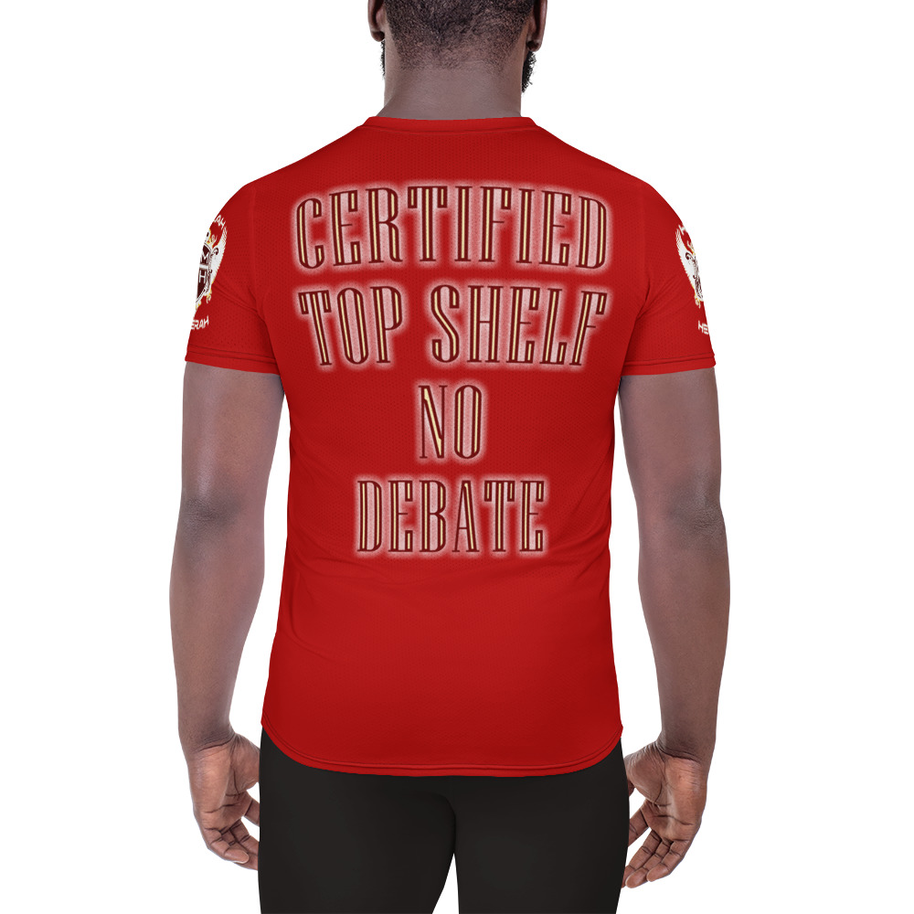 The Hemerah Top Shelf 1, Men’s athletic t-shirt perfect for all kinds of events. Its moisture management is sure to keep you dry and comfortable even during the most vigorous of activities.